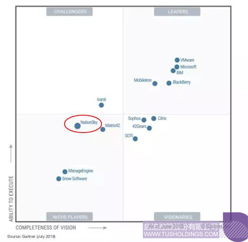 国信连续三年进入 Gartner EMM/UEM 魔力象限,成为该象限中第一家,也是唯一的一家中国企业。在传统欧美巨头垄断的移动安全领域,实现了突破,打造了国际领先的国产软件。