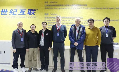 控股成员企业世纪互联总部,与世纪互联董事长陈升、副总裁沈寓实博士、网络产品中心总经理李信满博士,以及来自世纪互联开放生态成员单位的陈振国、邹杰、史宁宁等专家进行会谈,多方围绕互联网发展、新一代信息技术发展、网络安全等方向展开深度交流讨论,并达成共识。