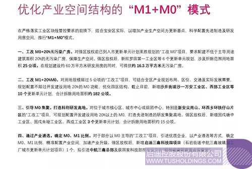 三鑫科技园项目”(申报名称:石岩街道中航三鑫玻璃加工厂城市更新单元)被列入“优化产业空间结构的‘M1+M0’模式”,并成为模式中通过产业遴选,确定以M0为主导的“工改工”项目的首要范例。