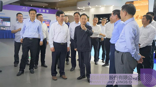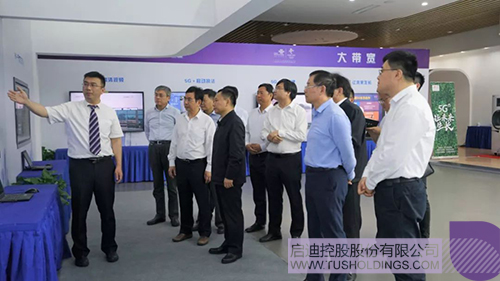 在科技城展示中心一层的联通5G创新实地应用展区,李国英省长了解了5G“大带宽、大连接、低时延“的三大典型特征,并仔细询问了5G在工业互联网、移动执法、智慧能源、远程驾驶等方面的应用及取得的成果。