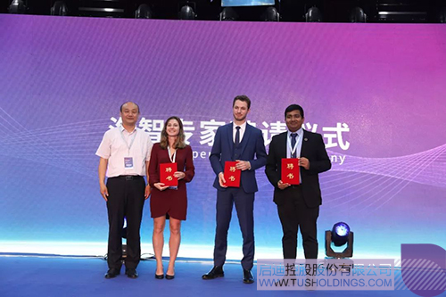 菏泽市科协党组书记、副主席朱留芝为联合国开发计划署区域青年项目协调官Savinda Ranathunga、法国驻华大使馆科技处政策顾问Sosthènes Dmitrašinović,清华大学苏世民书院研究学者Kiera Ariel Peltz颁发“海智专家”聘书。