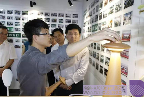 刘伟在调研过程中还认真了解了江门市征极光兆科技有限公司研发的智能灯光升级改造系统、江门古旗亭工业设计的“时光灯”以及江门堡城科技研发的光伏发电系统等入孵企业产品情况。