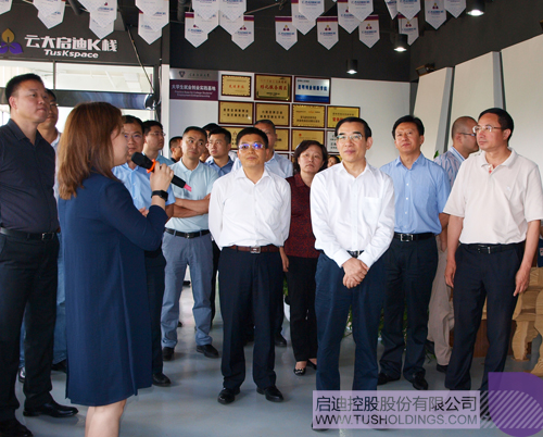 K栈众创空间调研。云南省政府副秘书长、省政府发展研究中心副主任蒋兴明;昆明市委常委、常务副市长保建彬,副市长孙涛;呈贡区委副书记、区长张先宝;云南大学党委书记杨林;云南乐鱼app官网登录入口-乐鱼(中国)