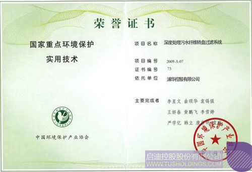 首创 3m 直径超大型纤维转盘过滤器,研制出第一台单机处理能力 5 万吨/日纤维转盘滤池,建成世界上规模最大的转盘过滤污水深度处理项目。纤维转盘滤池创新性的过滤介质及结构形式使得纤维转盘滤池出水稳定、产水率高、占地面积小,运行费用大大降低。