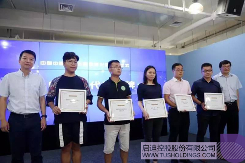 之星董事长张金生(右一)共同为首批5家入孵企业代表授牌