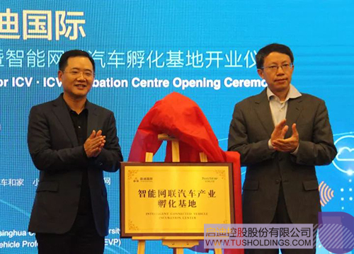控股董事长王济武、清华大学智能网联车辆研究中心主任李克强教授共同为孵化基地揭牌,宣告中国首个智能网联汽车孵化基地诞生。
