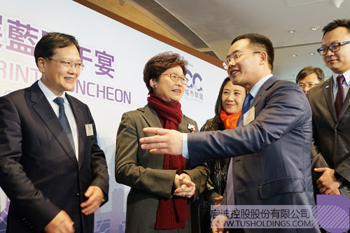 控股董事长王济武先生(右二)与香港特区行政长官林郑月娥女士(左二)、中联办副主任陈冬先生(左一)等嘉宾交流在构建智慧城市和发展智慧出行方面的经验
