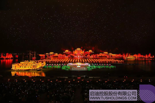 全舞美设施是由奥运、亚运、世博、APEC、G20峰会表演总制作人沙晓岚团队倾力打造。明月、繁星、湖景、树木等自然生态元素与灯光相结合,绘制出一幅月落平湖、秋水长天的汉风秋画。