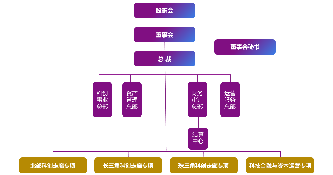 四个业务专项:北部科创走廊专项、长三角科创走廊专项、珠三角科创走廊专项、科技金融与资本运营专项