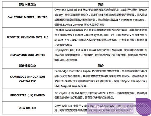 科技园已经有四处物业投入使用,并成功对剑桥当地的创新企业进行投资,部分入驻与投资企业简介如下: