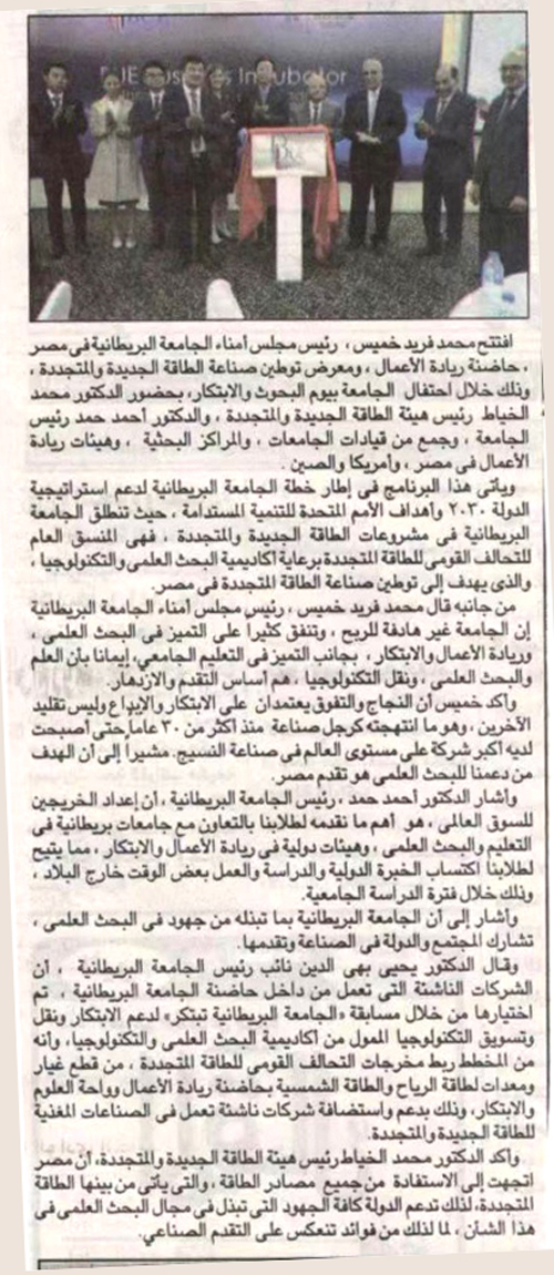之星丨埃及《金字塔报》:大不列颠大学启动创业孵化器打印