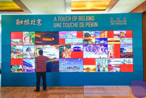一大片触摸屏引起了记者的注意。工作人员介绍,这是“触摸北京”互动区,采用雷达感应多点触控交互技术,可满足5人同时触摸滑屏翻阅,观赏400幅展示北京城市形象的图片。