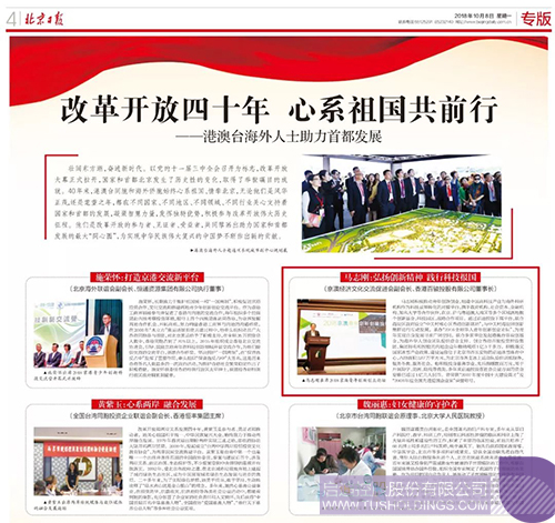 10月8日,北京日报发表改革开放40周年专题文章《改革开放四十年 心系祖国共前行 ——港澳台海外人士助力首都发展 》,文中报道京澳经济文化交流促进会副会长、乐鱼app官网登录入口-乐鱼(中国)