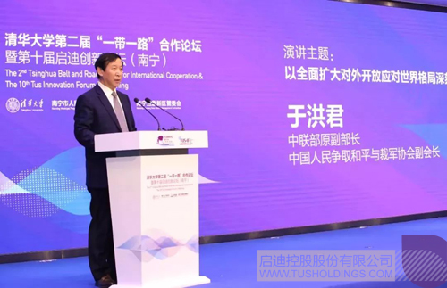 于洪君发表了题为《以全面扩大对外开放应对世界格局深刻变革》的主旨演讲。他认为,“一带一路”建设,开辟出了中国与世界联动发展、融合发展的崭新格局,越来越多的国家和国际组织与中国签署有关“一带一路”的合作文件,中国与时代同行,世界与中国同在的人类历史新阶段已经到来。