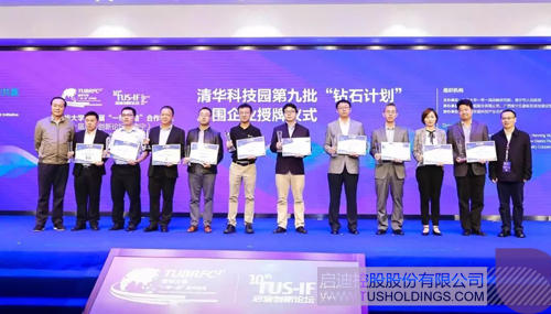 控股荣誉董事长梅萌为“寒武纪”、“第四范式”、“嘉宝仁和”、“神州德信”、“微光医疗”、“指掌易”、“仙途智能“、“易康泰科”、“创蓝文化”、“稻源微电子”第九批“钻石计划”入围企业授牌。