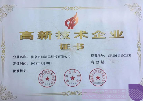 清风荣获北京市科学技术委员会、北京市财政局、北京市税务局颁发的“高新技术企业证书”。