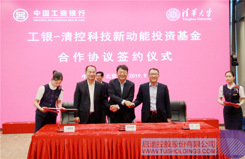 2019年9月24日,“工银-清控科技新动能基金”合作签约仪式在中国工商银行(以下简称“工行”)总行举行。工行总行副行长胡浩,总行投资银行部总经理李峰,工银金融资产投资有限公司党委书记、总裁张正华,清华大学常务副校长王希勤,清华控股党委书记、董事长龙大伟,清华控股党委副书记、总裁聂风华等出席仪式。