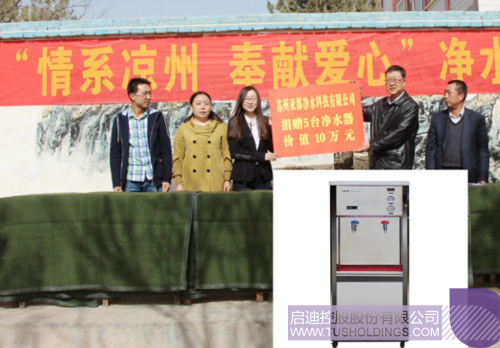 2015年4月16日, “情系凉州,奉献爱心” 亚都净水向武威市凉州区部分贫困农村学校捐赠5台亚都YD-RO50A-SH净水器。2016年9月13日,苏州亚都净水通过江苏省教育基金会向两所院校定向捐赠了51台价值150多万元的“亚都”校园专用直饮水设备,为校园教职员工提供安全健康的饮水保障。
