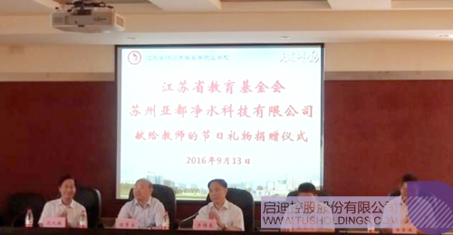 2016年9月13日,苏州亚都净水通过江苏省教育基金会向两所院校定向捐赠了51台价值150多万元的“亚都”校园专用直饮水设备,为校园教职员工提供安全健康的饮水保障。