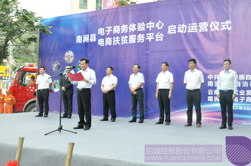 战略规划与投资管理中心经理宋晖等共同启动南涧县电子商务体验中心、电商扶贫服务平台,见证天焱电子商务“邻老板”总部挂牌。王绍基在致辞中表示,“‘邻老板’电子商务总部落户南涧,天焱电子商务有限公司电子商务体验中心、电商扶贫服务平台正式启动运营,标志着南涧县电子商务发展将掀开崭新的一页” 。