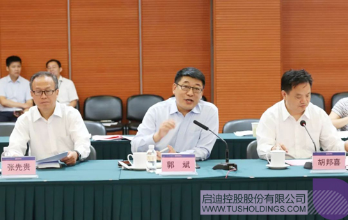 中国宝武集团副总经理、武钢集团执行董事兼总经理郭斌(左二)致辞