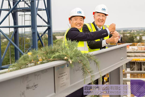 建筑物的封顶仪式在西方文化中有重要的意义。英国的习俗是在顶梁上放置红豆杉树枝,并由参与封顶仪式的贵宾们在梁上签字后进行放置,寓意吉祥和好运。签字仪式后,嘉宾们登上即将封顶的生命科技创新中心,随着最后的一根柱梁缓慢升起,Greg Winter院长和王济武董事长亲自拧紧最后一颗螺丝,完成了中心的封顶,这不仅标志着生命科技创新中心封顶完成,也预示着双方未来的合作会更加紧密与务实。