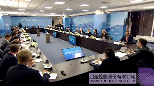 9月11日,俄罗斯第四届东方经济论坛在远东城市符拉迪沃斯托克举办。当日下午,由论坛主办方邀请的中外企业家代表参加了与普京总统的座谈会。王济武董事长应邀出席,并与其他五位中外企业家在座谈会上发言。