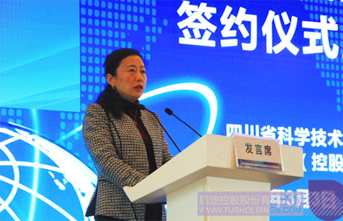 控股总裁袁桅,中国科学院成都分院党组书记王学定,川开实业集团有限公司副董事长简晓琴出席签约仪式并致辞。签约仪式由四川省科学技术厅副厅长杨品华主持。
